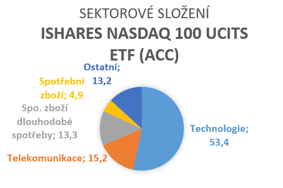 Sektorové složení: Technologie (53,4 %), Telekomunikace (15,2 %), Spotřebitelské služby (13,3 %), Spotřební zboží (4,9 %), Ostatní (13,1 %)